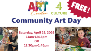 We love to host free Art days every year! Thank you to 4Culture for providing grants that allow us to do these amazing events that are FREE to the public.